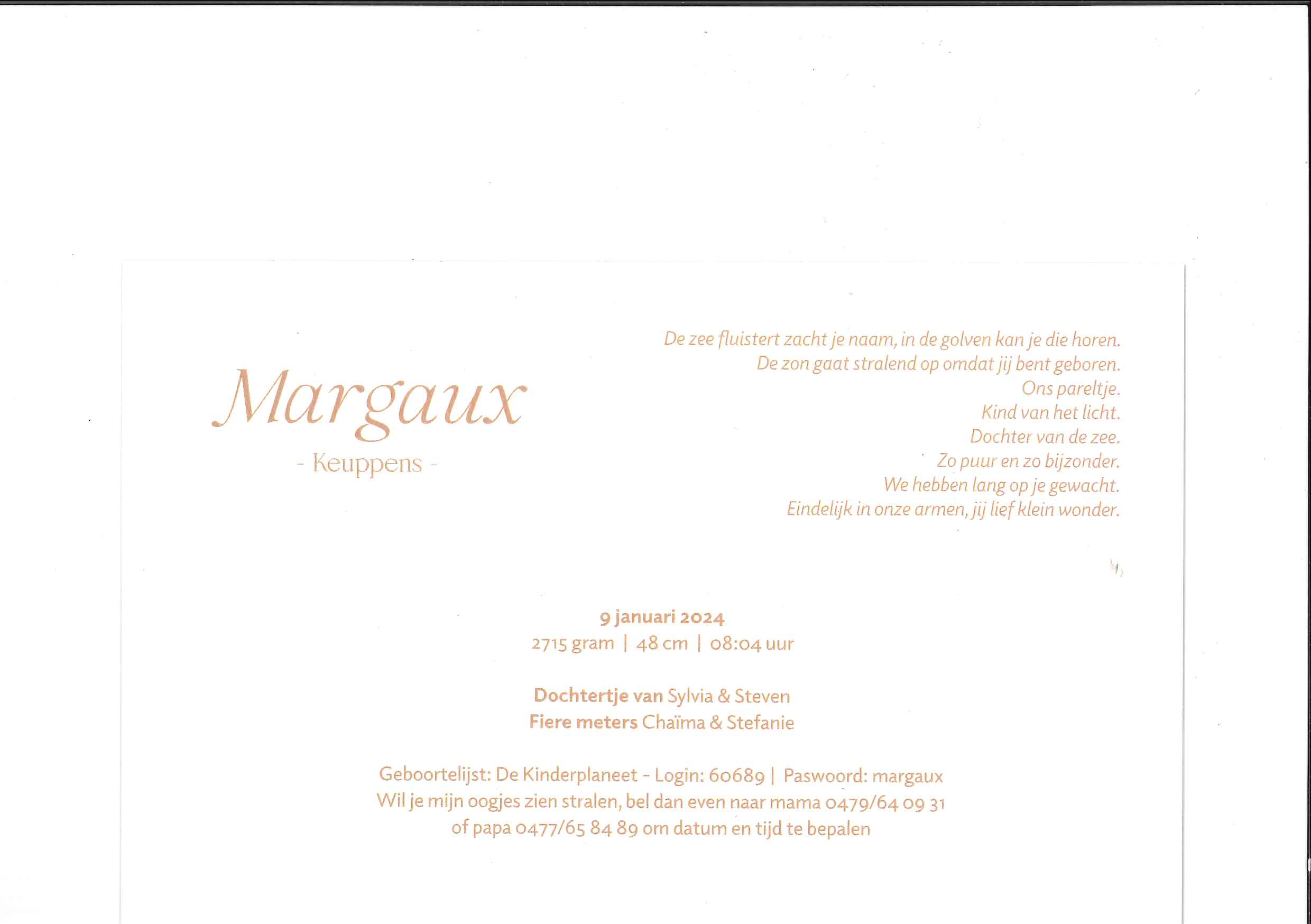 Welkom aan het dochtertje van Sylvia en Steven Keuppens, onze trouwe sponsor Rafelek!